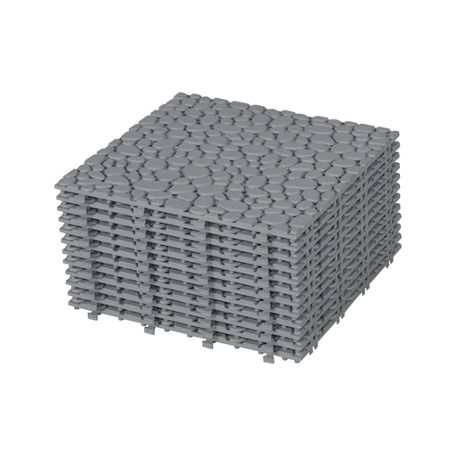 Interlocking Deck Tiles Plastic Waterproof Outdoor All Weather Anti-Slip Bathroom Shower Balcony Porch Strong Weight Capacity Upto 440 Lbs, Pebble Stone Pattern