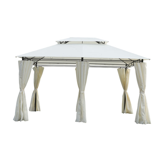Outdoor Patio Gazebo Tent With Ventilated Double Roof And Sidewall