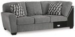 This left-arm facing sofa is made with polyester upholstery. Pairs with other items in the series to make a sectional.