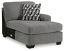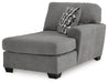 This right-arm facing corner chaise is made with polyester upholstery. Pairs with other items in the series to make a sectional.