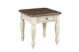 End Table With Storage Drawer - Antique White / Brown 24.02"W x 24.02"D x 24.25"H - 38.01 lb