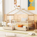 Twin Size House Bed With 2 Drawers - Natural 79.49"W x 41.81"D x 62.91"H - 95.99 lb