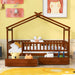 Twin Size House Bed With 2 Drawers - Walnut 79.49"W x 41.81"D x 62.91"H - 95.99 lb