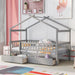 Twin Size House Bed With 2 Drawers - Gray 79.49"W x 41.81"D x 62.91"H - 95.99 lb