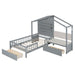 Twin Size House Bed With Upholstered Sofa, Wireless Charging Station, Shelves And 2 Drawers - Gray 78.9"W x 83.82"D x 66.81"H - 146.74 lb