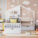 Twin Size House Bed With Upholstered Sofa, Wireless Charging Station, Shelves And 2 Drawers - White 78.9"W x 83.82"D x 66.81"H - 146.74 lb