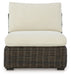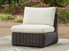 This outdoor armless chair is made with Nuvella+™ solution-dyed high-performance fabric. Pairs with other items in the series to make an outdoor sectional.