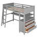 Full Size Loft Bed With Drawers And Desk With Shelves - Gray