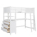 Full Size Loft Bed With Drawers And Desk With Shelves - White