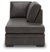 This right-arm facing corner chaise is made with faux leather upholstery. Pairs with other items in the series to make a sectional.