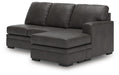 This right-arm facing sofa chaise is made with faux leather upholstery. Pairs with other items in the series to make a sectional.