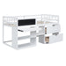 Twin Size Low Loft Bed With Rolling Desk, Shelf And Drawers - White 76.89"W x 42.4"D x 41.89"H - 135.39 lb