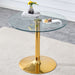 Modern Minimalist Round Dining Table With Glass Top And Metal Legs 35" Diameter - Gold / Transparent 35.0"W x 35.0"D x 29.49"H - 40.01 lb