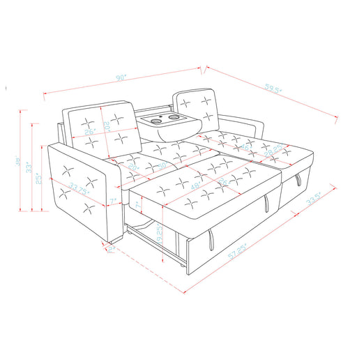 Gustavo - Sofa, Pull Out Bed, Storage Chaise, USB And Cup Holders - Beige