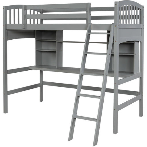 Loft Bed With A Stand Alone Bed, Shelves, Desk, And Wardrobe
