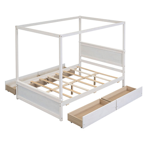 Canopy Platform Bed With Drawers, Support Slats, No Box Spring Needed