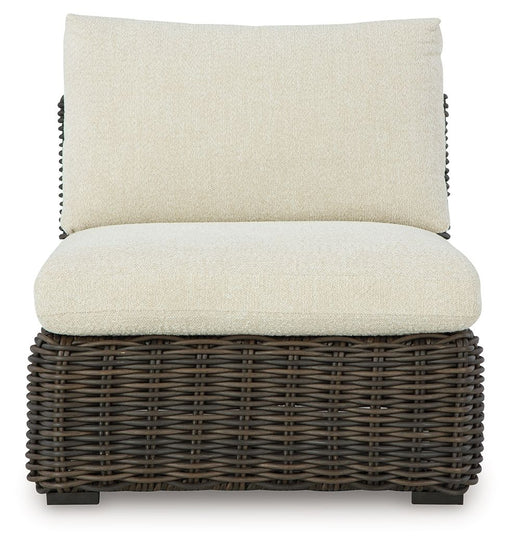 This outdoor armless chair is made with Nuvella+™ solution-dyed high-performance fabric. Pairs with other items in the series to make an outdoor se...