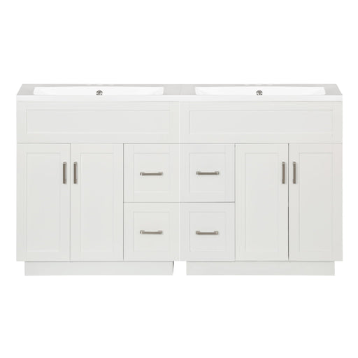 59.3" Double Sink Bathroom Vanity With Smc Resin Top, Painted Cabinet, Soft Close Doors, Wall Mounted - Wood