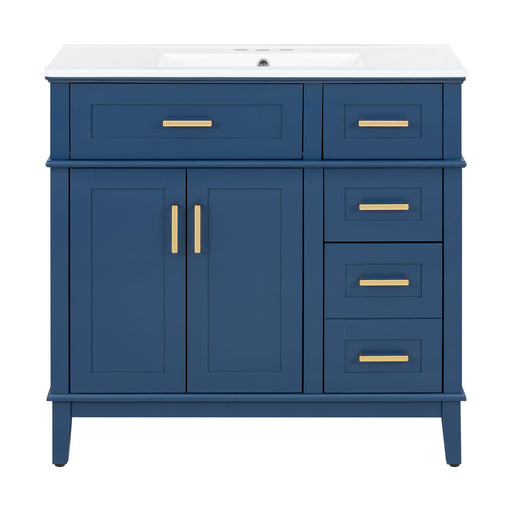 Bathroom Vanity With Ceramic Sink, Soft-Close Doors, 4 Storage Drawers - Blue