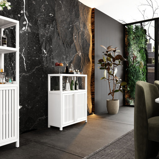 Wooden Bathroom Floor Storage Cabinet With 2 Doors And 6 Shelves - White