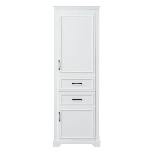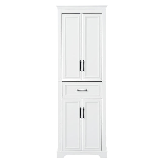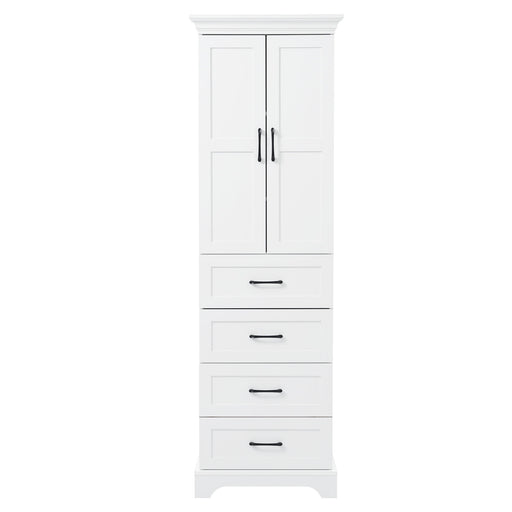 Linen Cabinet, 3 Shelves, 4 Drawers And Metal Handles - White
