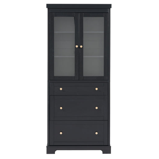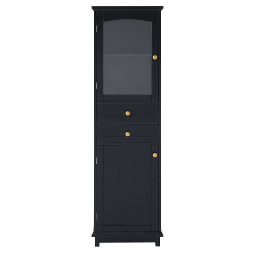 Tall Bathroom Storage Cabinet With Glass Doors, Free-Standing, Two Drawers, And Adjustable Shelves, MDF Board, Painted Perfect For Displaying Your Favorite Items