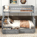 Twin Over Full Bunk Bed With Drawers, Convertible Platform Bed - Gray