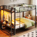 Full Size Bunk Bed With Storage Mesh Shelves, Clothes Hooks, LED Light - Black 87.4"W x 55.59"D x 65.0"H - 106.0 lb