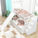 Twin Over Twin Bunk Bed With Storage Staircase, Slide, Desk, Drawers, And Shelves - White
