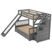 Twin Over Full Bunk Bed With Drawers, Storage, Slide And Ladder, Lower Bed - Gray