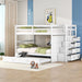 Full Over Full Bunk Bed With Twin Size Trundle And Staircase - White 96.89"W x 58.39"D x 65.51"H - 286.25 lb