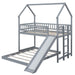 Twin Over Full House Bunk Bed With Slide And Built In Ladder, Full Length Guardrail - Gray 79.49"W x 91.61"D x 86.81"H - 138.01 lb