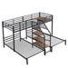 Twin Over Twin & Twin Bunk Bed With Storage Shelves And Staircase, 3 Deck Design - Black 100.79"W x 78.39"D x 57.91"H - 163.01 lb