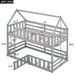 Twin Over Twin House Bunk Bed With Fence And Door - Gray 77.01"W x 41.69"D x 69.8"H - 121.5 lb