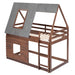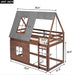 Wood Twin Size House Bunk Bed With Roof, Ladder And 2 Windows - Oak & Smoky Gray 78.39"W x 41.61"D x 81.69"H - 142.0 lb