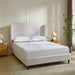 Hannah - Queen Upholstered Wingback Bed Size, Tall Headboard Upholstered Queen Bed, Premium Textured Canvas Chenille Look, Minimalist Designs, No Box Spring Needed - Ivory