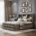 Queen Size Platform Bed With Storage Headboard And 8 Drawers - Gray
