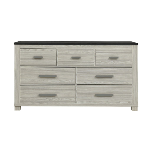 With its clean-lined look and modern attitude, this dresser is a fresh style awakening. A warm gray hue over replicated oak grain easily complement...