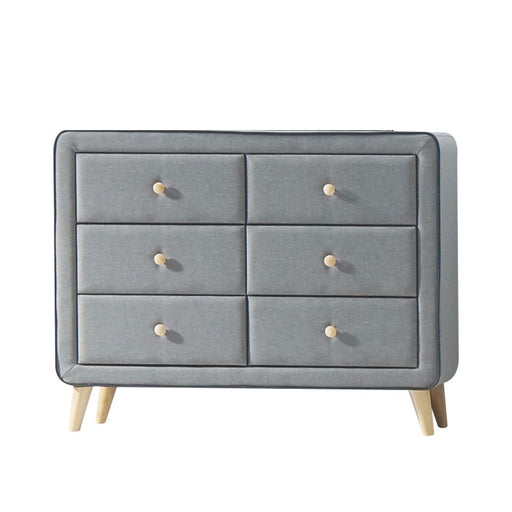 Valda - Dresser - Light Gray FabricProduct Features 6 Drawer Padded: Light Gray Fabric & Black Welt Trim Drawer: GLIDE Side Metal, NO Dovetail,...