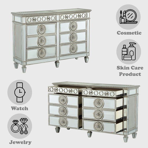Naima II - Dresser - White High GlossProduct Features 8 Drawer 6 Drawer & 2 Hidden Jewelry Drawer (Sparkling Front, Felt Lined & Dividers) ...