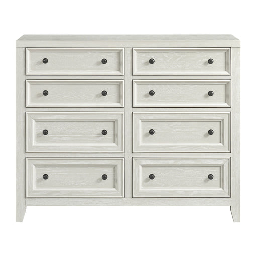 Cool, clean and casually modern. This dresser’s wispy whitewash and gray finish sets the tone for your calming sanctuary. Large linear pulls add di...