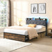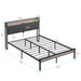 Full Size Metal Platform Bed Frame With Upholstery Storage Headboard And USB Liner - Beige / Black