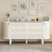 Sleek Drawer-Front Design: Camouflaged drawers with handwoven rattan accents blend rustic-modern charm into any décor. The minimalist yet functional front panels enhance aesthetics while discreetly concealing storage.