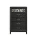 The Obsidian 5-Drawer Chest in Black is a sophisticated piece that combines modern elegance with practical functionality. Expertly crafted from premium solid Rubberwood and enhanced with manufactured woods and veneers, this chest offers both lasting beauty and the durability of genuine wood. Its sleek design is highlighted by clean lines and a low-sheen black finish that exudes refined sophistication. Geometric cut-outs backed with mirror-like Mylar add a luxurious touch of modern glamour. The chest features five smooth-gliding drawers equipped with durable Kenlin Glides and stylish acrylic drawer pulls, all meticulously crafted with dovetail joinery and finished interiors for a snag-free, elegant storage solution.