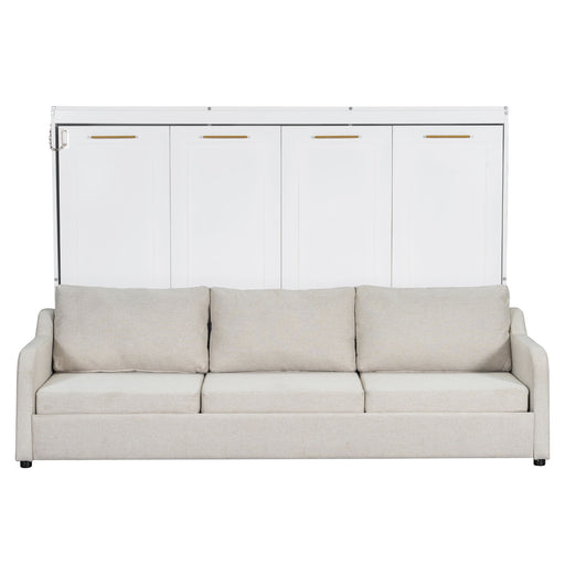 Murphy Cabinet Bed With Folding Sofa, Built In Storage Shelves And LED Light