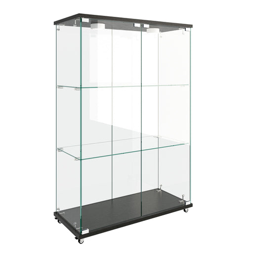 Modern Display Cabinet With LED Lights, Transparent Tempered Glass 2 Door Storage Case With 3 Shelves