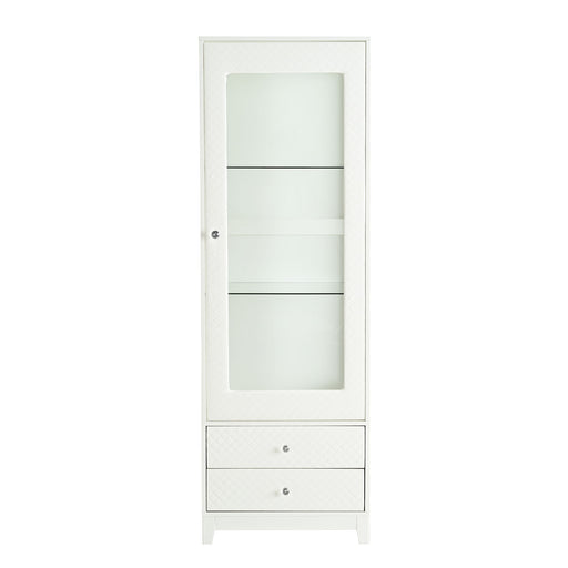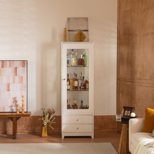 Modern Style Tall Display Cabinet With LED Lighting, Tempered Glass Door, 2 Drawers