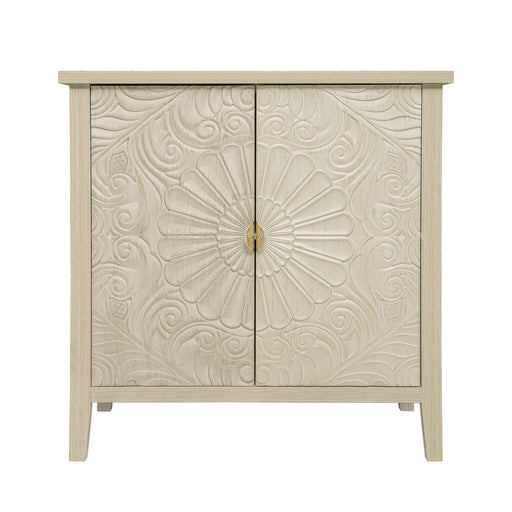2 Door Carved Storage Cabinet With Adjustable Shelf, Accent Furniture