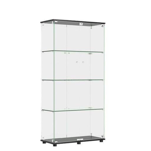 Modern Glass Display Cabinet With 4 Shelf Double Doors And Lock, Tempered Glass Bookshelf For Living Room - Black