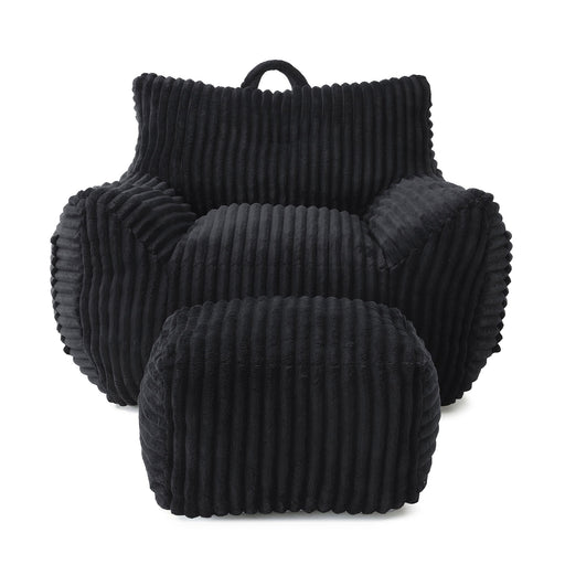 Giant Plush Bean Bag Chair With Armrests And Footstool